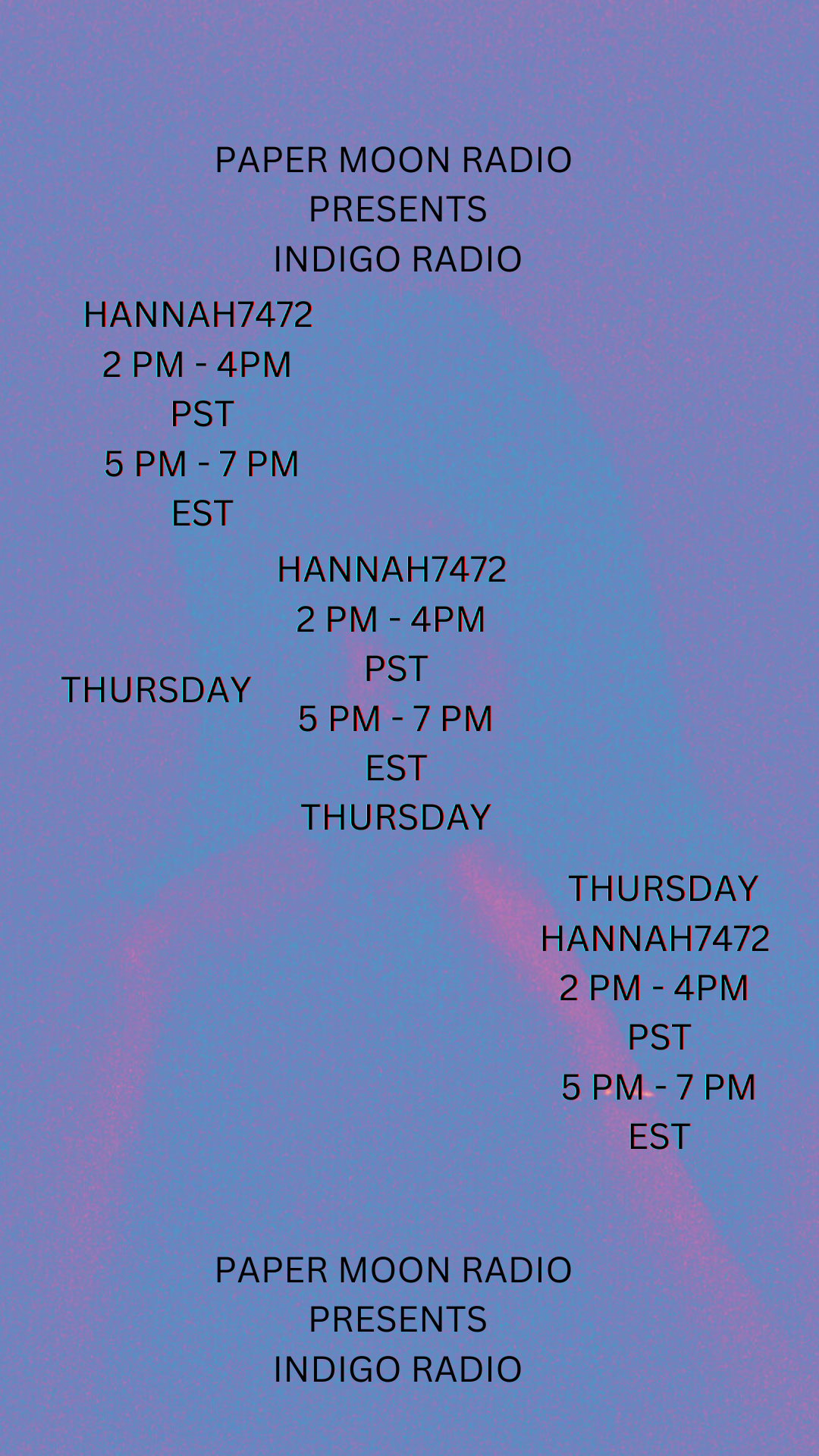thursdays 2pm-4pm PT/5pm-7pm ET