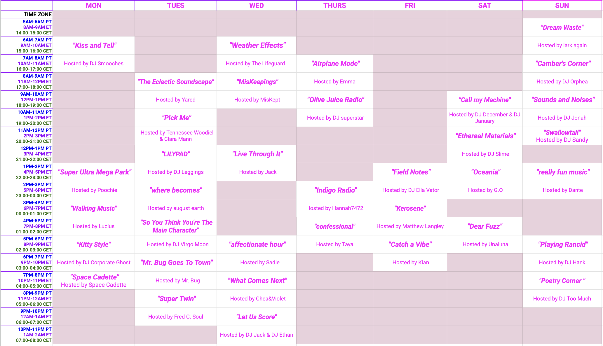 DJ Schedule